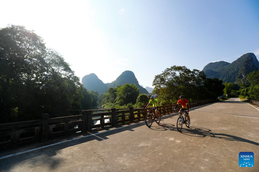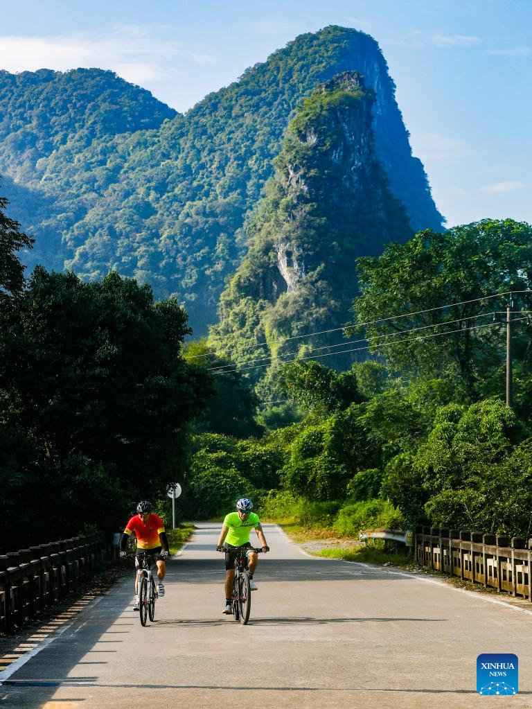 Enthusiasts ride bicycles in Guilin, south China's Guangxi Zhuang Autonomous Region, Sept. 6, 2023. (Xinhua/Hu Xingyu)