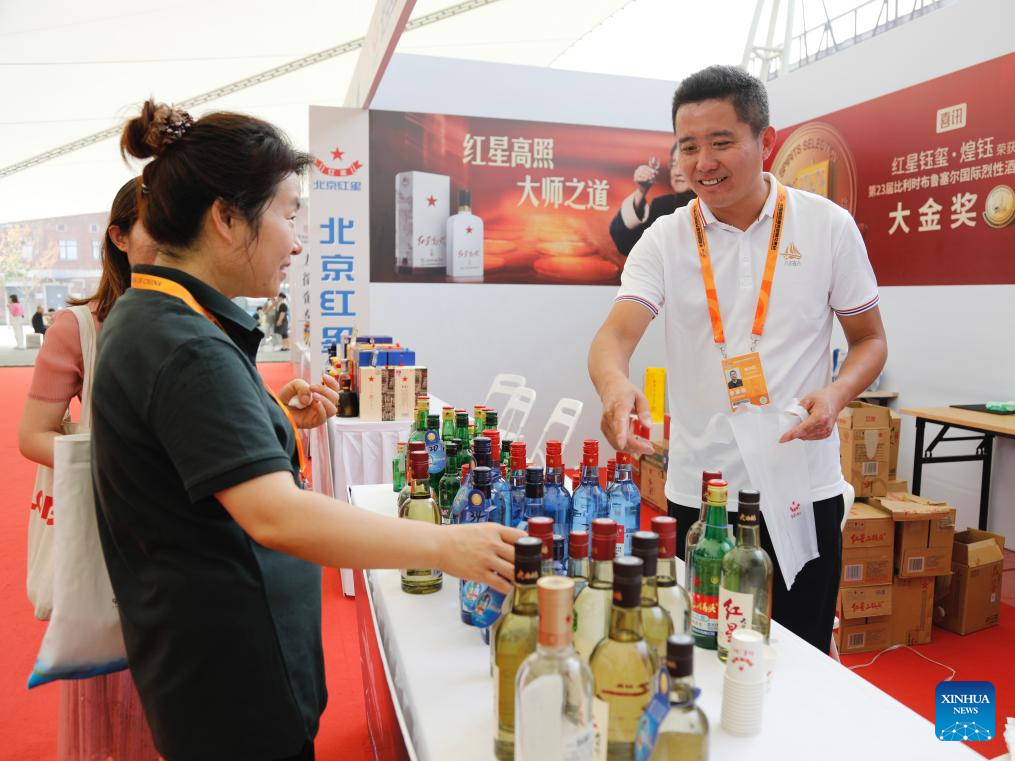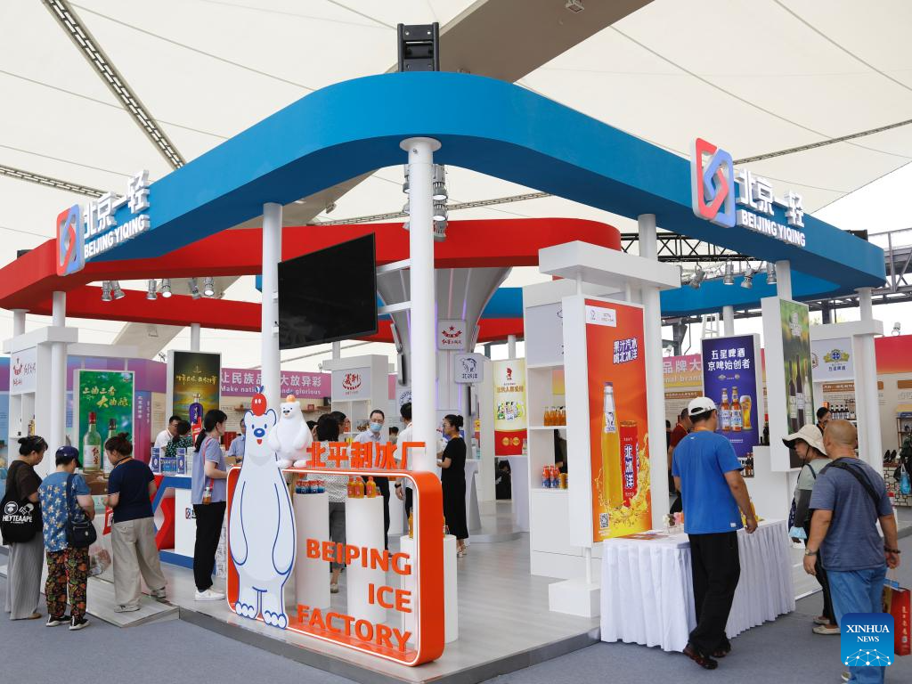 Visitors are seen at the exhibition hall of Beijing time-honored brand during the 2023 China International Fair for Trade in Services (CIFTIS) in Beijing, capital of China, Sept. 6, 2023. A number of time-honored brands in catering business made their debut at the exhibition hall of Beijing time-honored brand during the 2023 CIFTIS, attracting numerous guests to come for a taste. (Xinhua/Liu Mengqi)