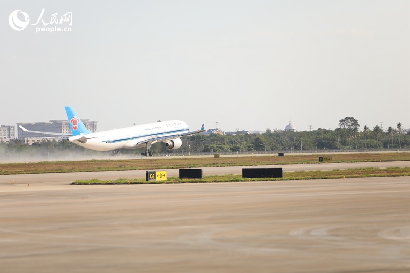 An international flight lands at Haikou Meilan International Airport in Haikou, capital of south China's Hainan Province. (People's Daily Online/Meng Fansheng)