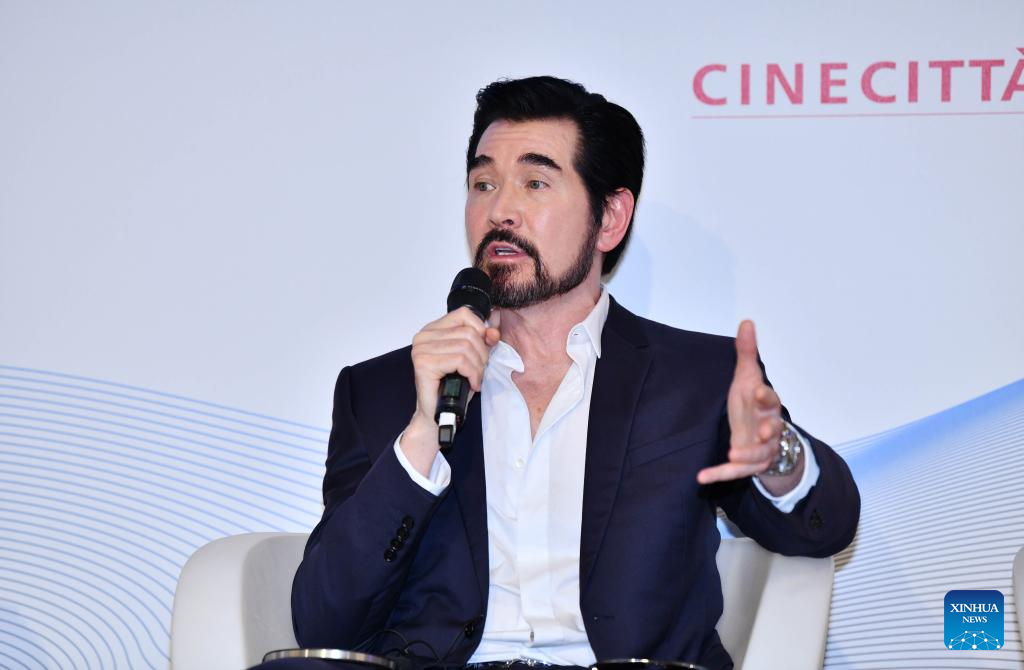 Chinese-American singer and actor Kris Phillips attends a panel discussion themed on "Genre Trends in Global Film Production" during the 80th Venice International Film Festival in Venice, Italy, Sept. 3, 2023. (Xinhua/Jin Mamengni)