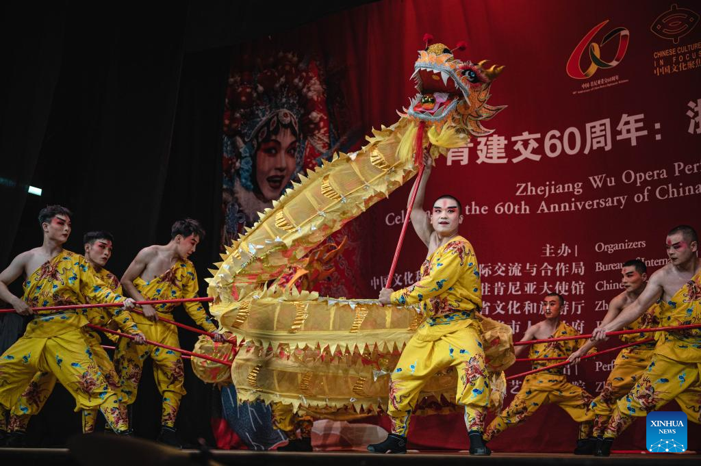 The Zhejiang Wu Opera troupe showcased nine performances, including the "9-Pieced Segmented Dragon", Suona Solo "Picking Dates", "the Sedan Ride" and "Three Triumphs Over the Skeletal Demon", using well-choreographed and acrobatic moves.