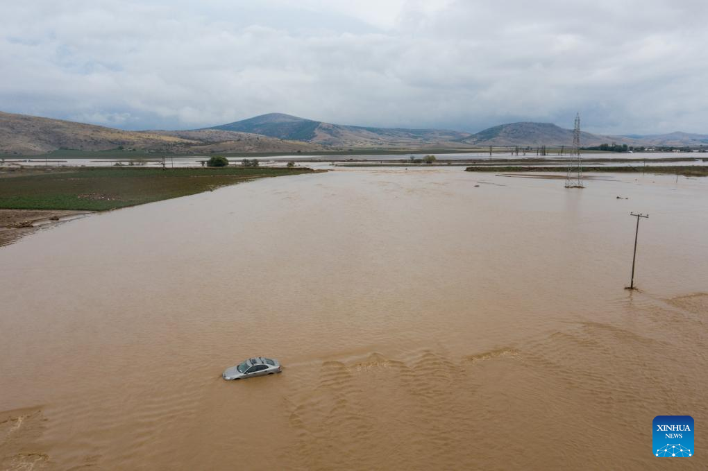 Photo taken on Sept. 7, 2023 shows a flood-effected area in Karditsa, Thessaly region, Greece. The death toll from extensive flooding caused by torrential rains in central Greece this week has reached six, with the bodies of two elderly women recovered in the Thessaly region on Thursday afternoon, Greek national broadcaster ERT has reported. (Photo by Antonis Nikolopoulos/Xinhua)