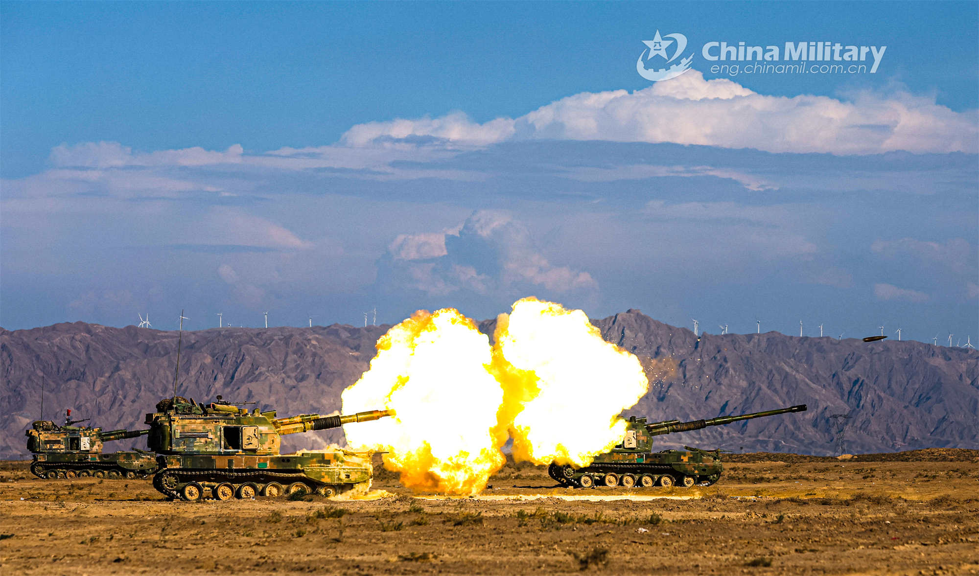 Armored vehicles attached to a brigade under the PLA 82nd Group Army spit fire at fixed targets during a live-fire test in late August. (eng.chinamil.com.cn/Photo by Cheng Chunlei)