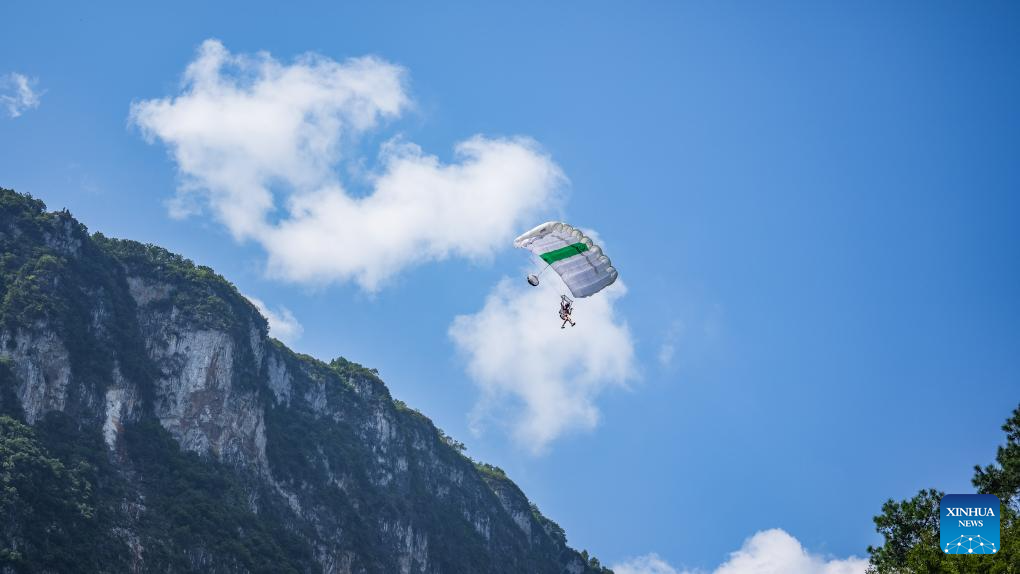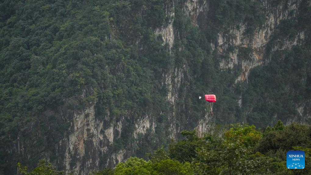 Jan Beranek of the Czech Republic takes part in the 2023 International High Bridge Extreme Sports Invitational Tournament in Liupanshui, southwest China's Guizhou Province, Sept. 7, 2023. A total of 25 athletes from 11 countries and regions, including Italy, France, Canada and the United States, came to China's Beipanjiang Bridge to participate in the 2023 International High Bridge Extreme Sports Invitational Tournament. (Xinhua/Tao Liang)