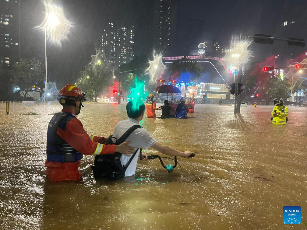 The bureau said this rainfall featured super strong intensity, long duration and wide range of torrential rain, with four rainfall records, namely two-hour, three-hour, six-hour and 12-hour maximum rainfall, broken since Shenzhen started keeping meteorological records in 1952.