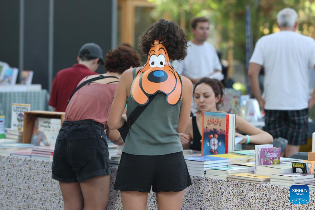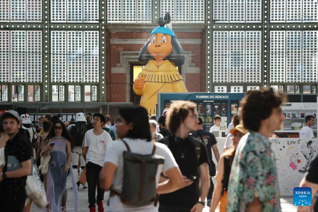 People visit the BD Comic Strip Festival in Brussels, Belgium, on Sept. 8, 2023. The BD Comic Strip Festival kicked off here on Friday. (Xinhua/Zhao Dingzhe)