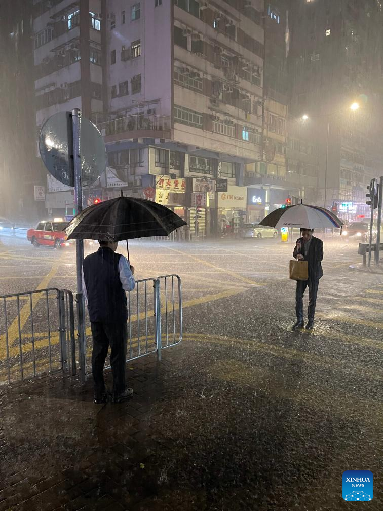 The Hong Kong Observatory issued a black rainstorm warning signal at 11:05 p.m. local time (0305 GMT) on Saturday, which was downgraded to a yellow rainstorm warning signal on Friday afternoon.