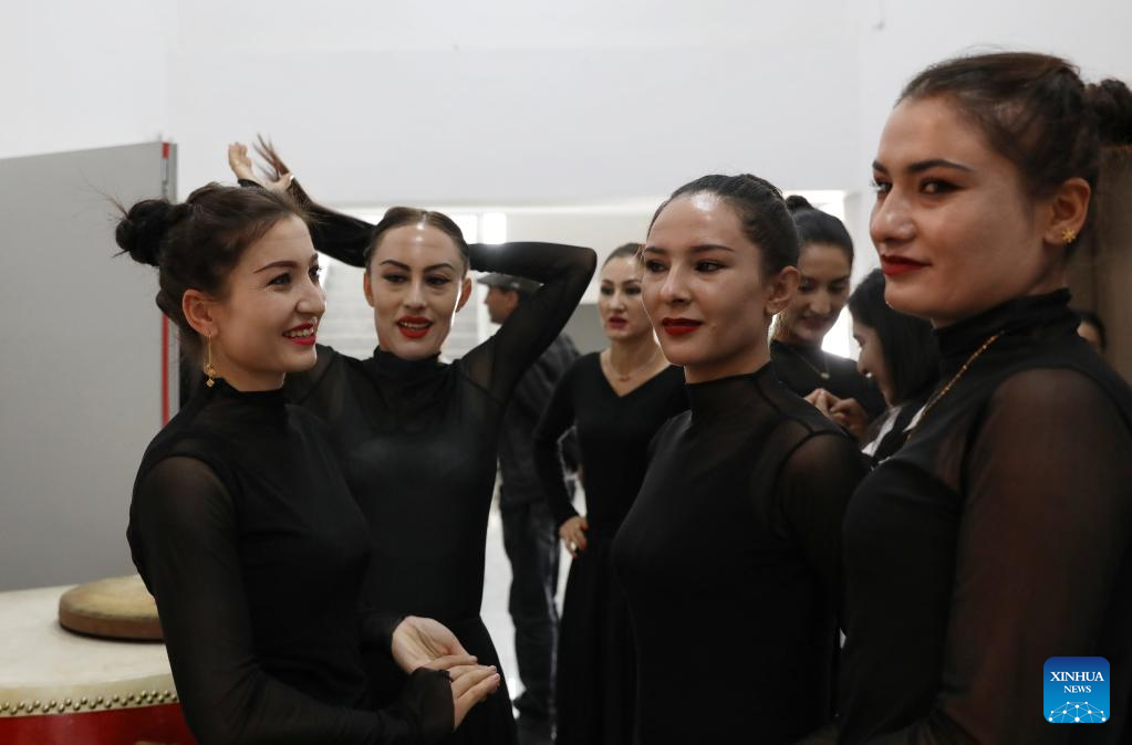 Artists of a local art troupe rehearse a program in Taxkorgan Tajik Autonomous County, northwest China's Xinjiang Uygur Autonomous Region, Sept. 4, 2023. Taxkorgan Tajik Autonomous County has made great efforts in the integration of local culture and tourism in recent years, enriching the cultural life of people and promoting foreign exchanges. The county also carries forward traditional Chinese culture to build cultural tourism festivals, which shows the scenery of the Pamir Plateau and the happy and stable life of the people. (Xinhua/Jin Haoyuan)