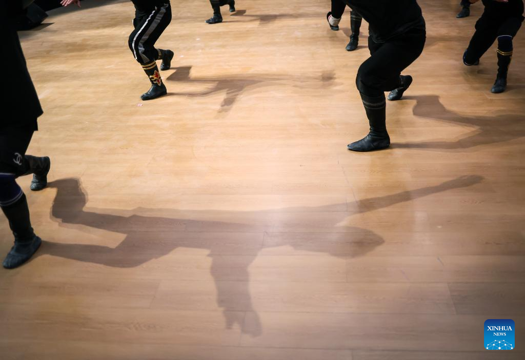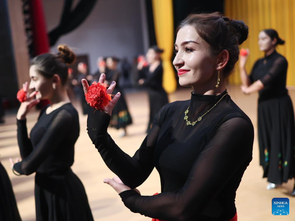Artists of a local art troupe rehearse a dance in Taxkorgan Tajik Autonomous County, northwest China's Xinjiang Uygur Autonomous Region, Sept. 4, 2023. Taxkorgan Tajik Autonomous County has made great efforts in the integration of local culture and tourism in recent years, enriching the cultural life of people and promoting foreign exchanges. The county also carries forward traditional Chinese culture to build cultural tourism festivals, which shows the scenery of the Pamir Plateau and the happy and stable life of the people. (Xinhua/Wang Fei)