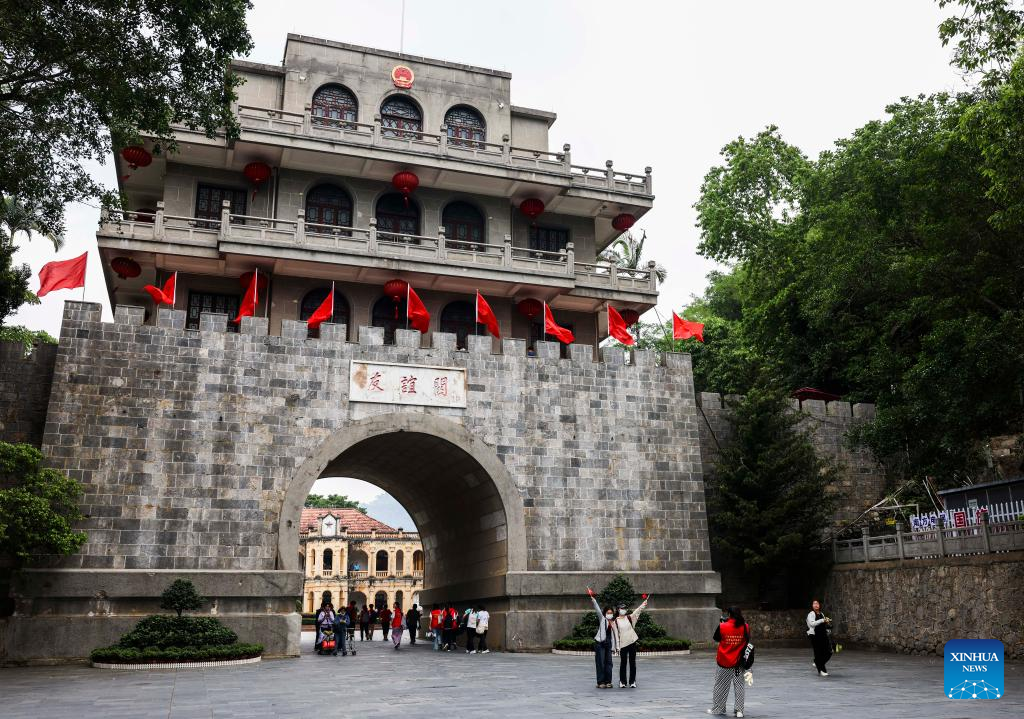 Visitors pose for photos at the Friendship Pass in Pingxiang, south China's Guangxi Zhuang Autonomous Region, May 19, 2023.