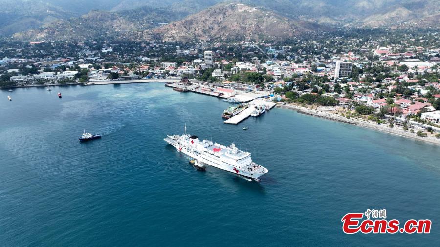 The Chinese PLA navy hospital ship "Peach Ark" leaves the port of Dili in Timor-Leste, on Sept. 10, 2023. (Photo: China News Service/Gui Jiangbo)