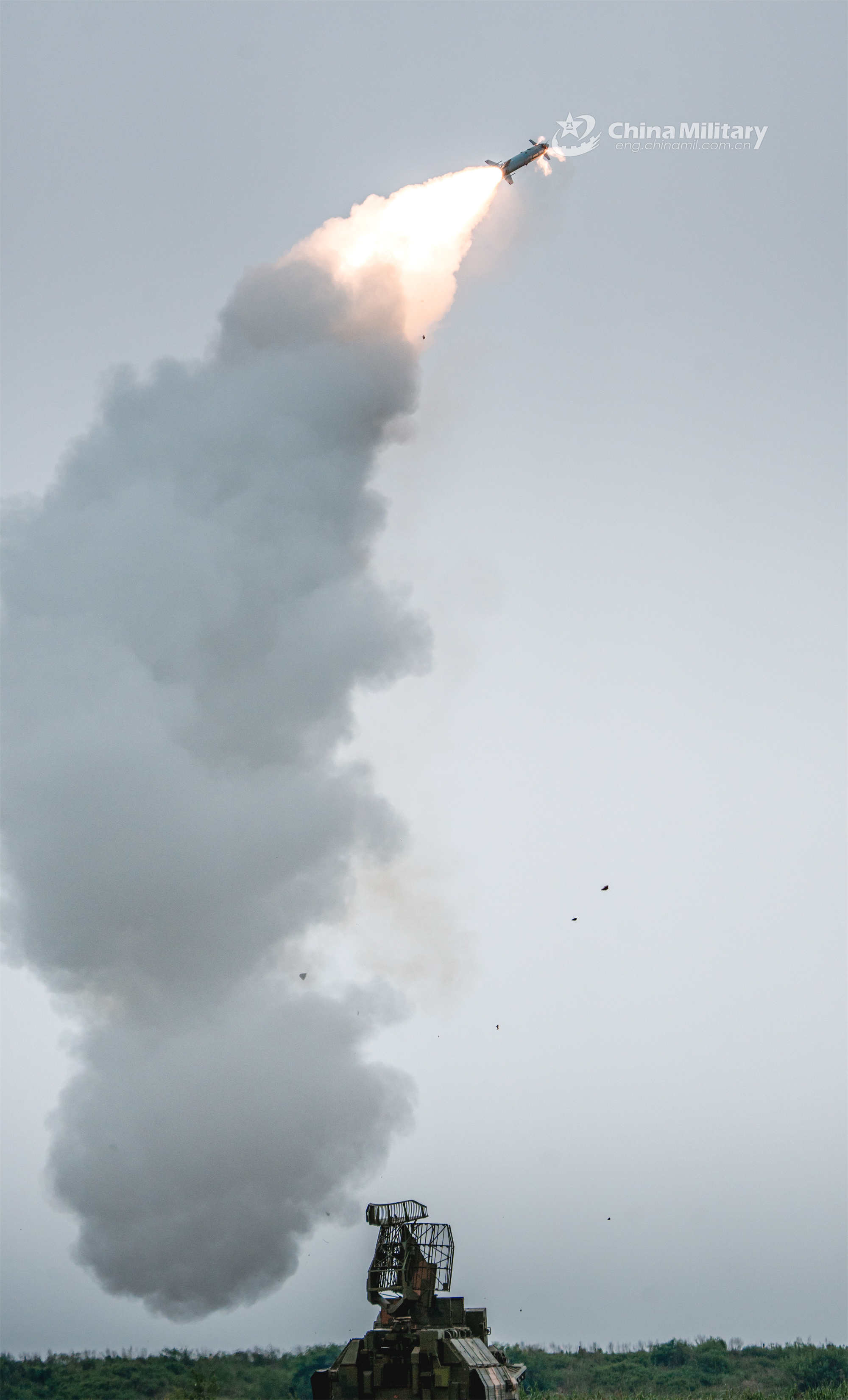 A ground-to-air missile system attached to an air defense brigade under the Chinese PLA 73rd Group Army launches a missile to knock down mock enemy aircraft. Recently, the brigade organized a live-fire air-defense exercise to strengthen the troop's combat capability. (eng.chinamil.com.cn/Photo by Zhang Jie)