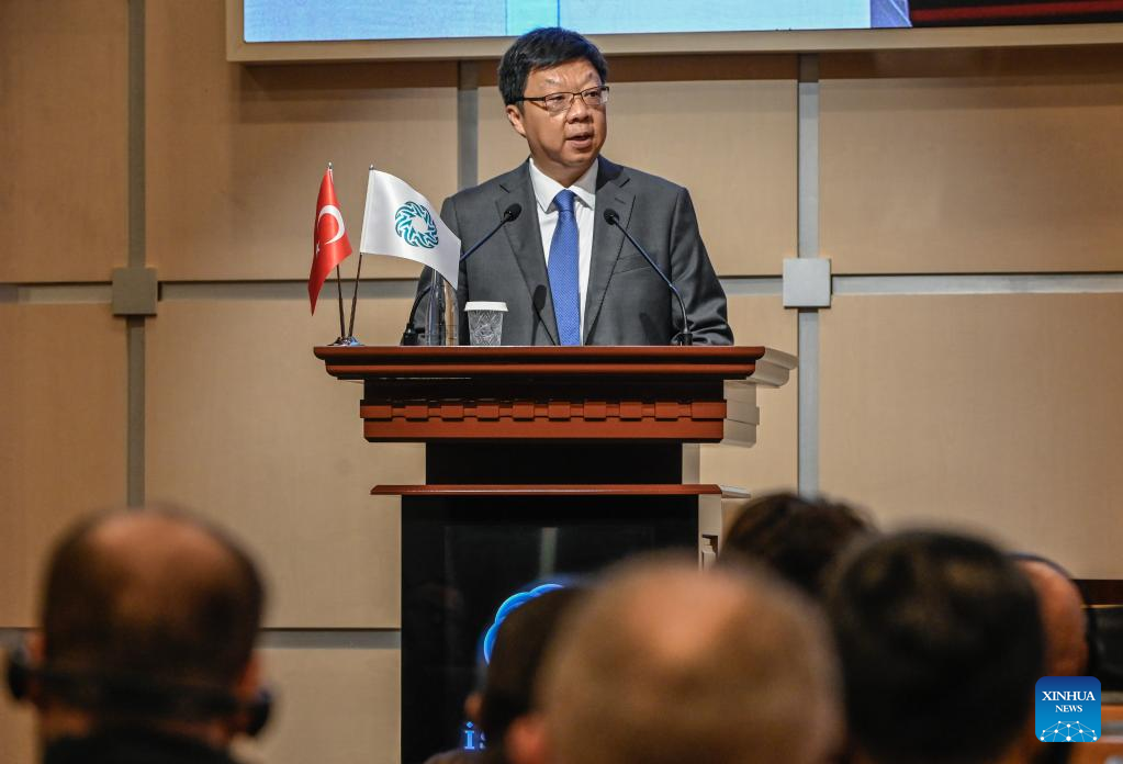 Chu Shijia, director general of the China Foreign Trade Center, speaks at the promotion of the upcoming 134th Canton Fair, in Istanbul, Trkiye, Sept. 11, 2023. Turkish business leaders in Istanbul were introduced to the upcoming China Import and Export Fair, commonly known as the Canton Fair, during an event on Monday. (Photo by Omer Kuscu/Xinhua)