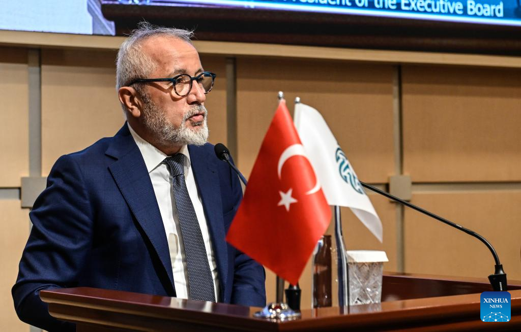 Ahmet Ozer, vice president of Board of Directors of the Istanbul Chamber of Commerce, speaks at the promotion of the upcoming 134th Canton Fair, in Istanbul, Trkiye, Sept. 11, 2023. Turkish business leaders in Istanbul were introduced to the upcoming China Import and Export Fair, commonly known as the Canton Fair, during an event on Monday. (Photo by Omer Kuscu/Xinhua)