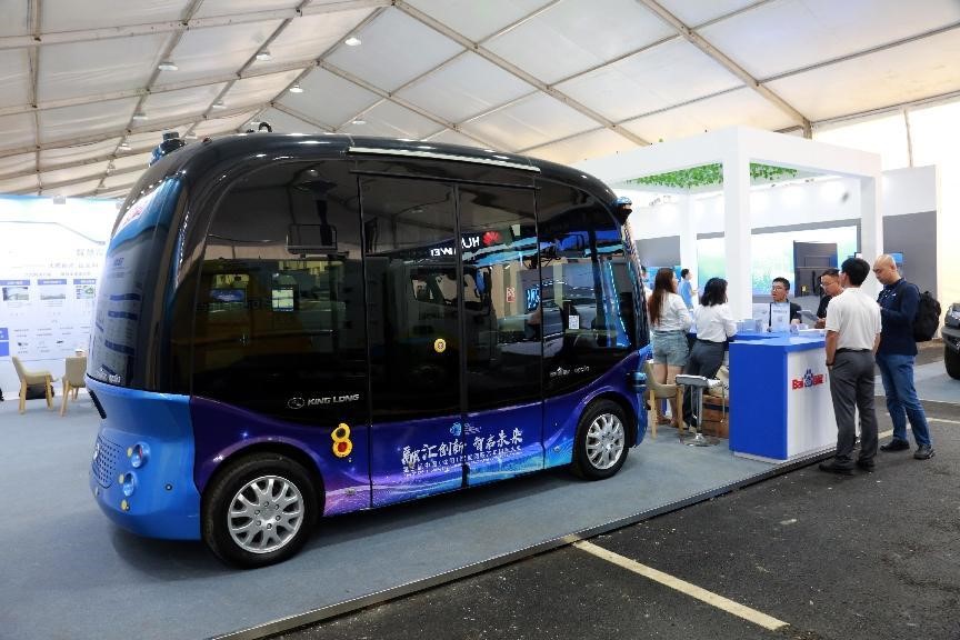An autopilot vehicle is exhibited at a conference about intelligent connected vehicles in Shenyang, northeast China's Liaoning province, July 8, 2023. (People's Daily Online/Huang Jinkun)