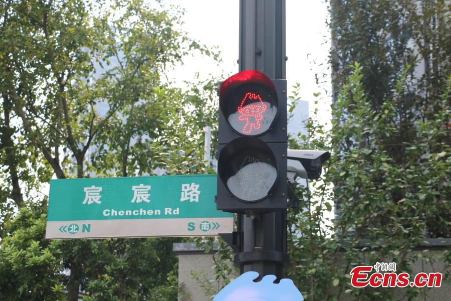 The traffic lights of the Hangzhou Asian Games mascot version appear at the 19th Asian Games Village in Hangzhou, east China's Zhejiang Province, Sept. 12, 2023. (Photo: China News Service/Qian Chenfei)
