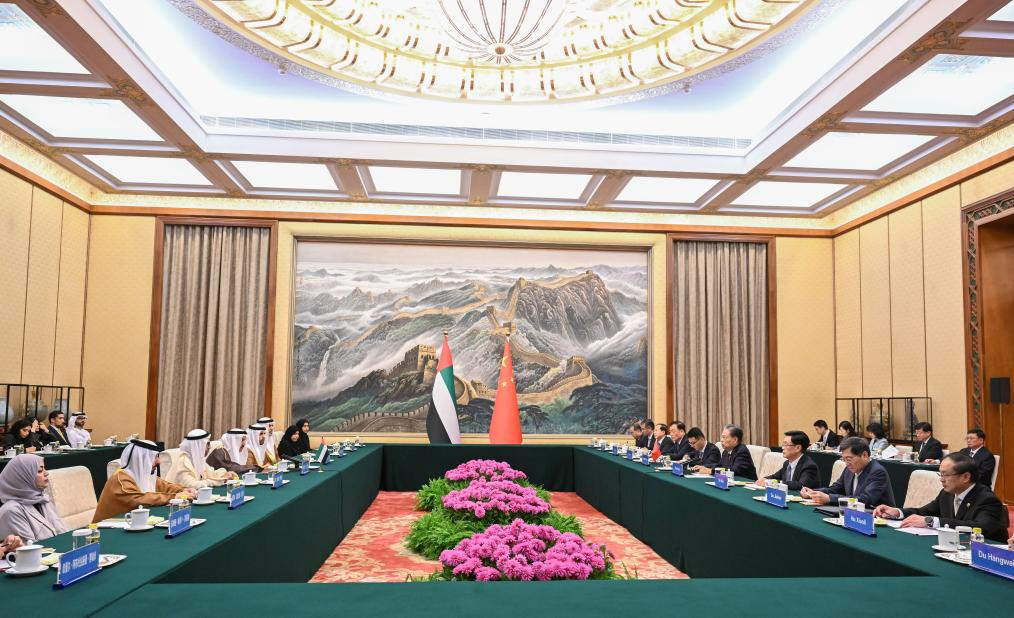 Zhao said that under the two countries' leaders, China and the UAE have continuously consolidated their political mutual trust, expanded their practical cooperation, deepened the friendship between the two peoples, and brought bilateral relations to a new stage of comprehensive, rapid and in-depth development. China is ready to work with the UAE to elevate bilateral relations and bring more benefits to the two peoples, he added.
