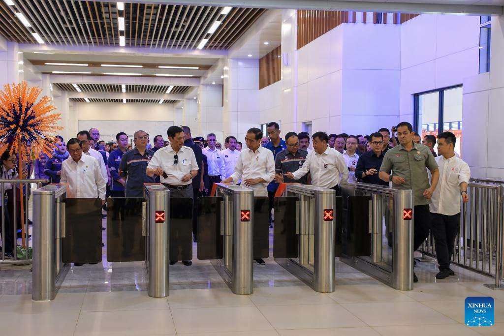 Widodo examined the construction progress at Halim Station in the capital Jakarta, and listened to the report of overall preparation for the opening to operation after arriving at Padalarang Station in West Java province by the HSR.