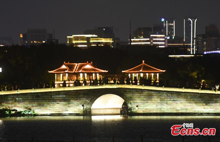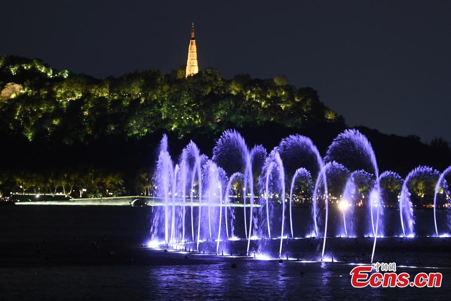 West Lake Scenic Area is illuminated by colorful lights in Hangzhou, east China's Zhejiang Province, Sept. 12, 2023. (Photo: China News Service/Wang Gang)