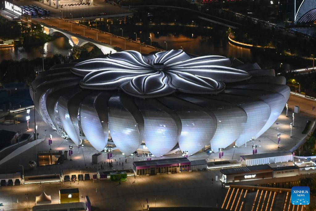 This aerial photo taken on Sept. 9, 2023 shows the Hangzhou Olympic Sports Center's Tennis Center in Hangzhou, east China's Zhejiang Province. (Xinhua/Huang Zongzhi)