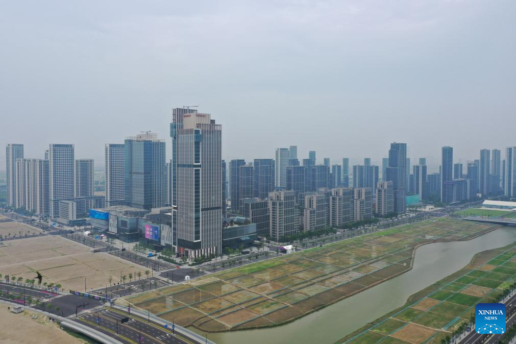 This aerial photo taken on June 28, 2023 shows Qianjiang new town in Hangzhou, east China's Zhejiang Province. (Xinhua/Huang Zongzhi)