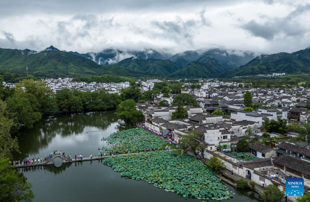 This aerial photo taken on Sept. 13, 2023 shows the Hongcun Village in Yixian County, Huangshan City of east China's Anhui Province. (Xinhua/Guo Chen)
