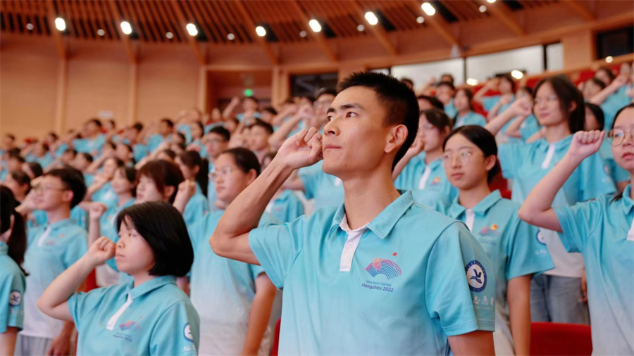 After preparing for various tasks, 319 student volunteers from Shaoxing University in Shaoxing, east China's Zhejiang Province, are eagerly awaiting the 19th Asian Games, which is scheduled to take place from Sept. 23 to Oct. 8 in Hangzhou, capital of Zhejiang Province.