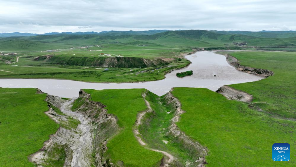 This aerial photo taken on July 6, 2023 shows the scenery along the Yellow River in Maqu County, Gannan Tibetan Autonomous Prefecture of northwest China's Gansu Province.