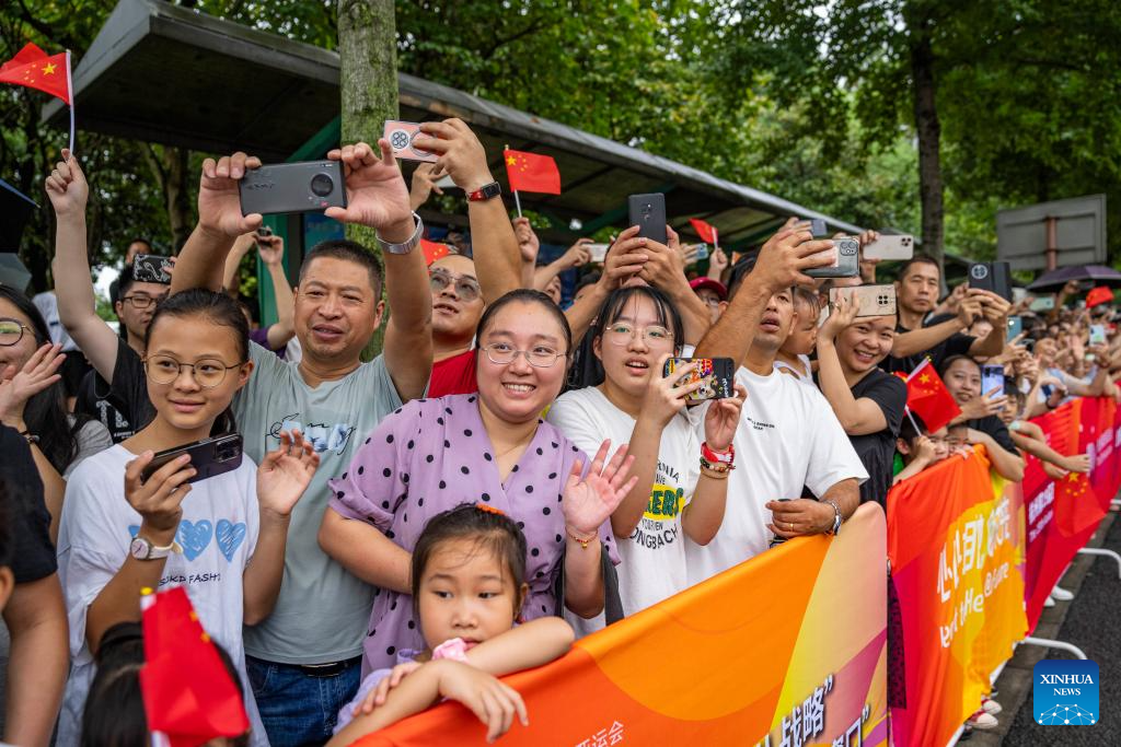 People watch the torch relay of the 19th Asian Games in Lishui, east China's Zhejiang Province, Sept. 16, 2023. (Xinhua/Sun Fei)