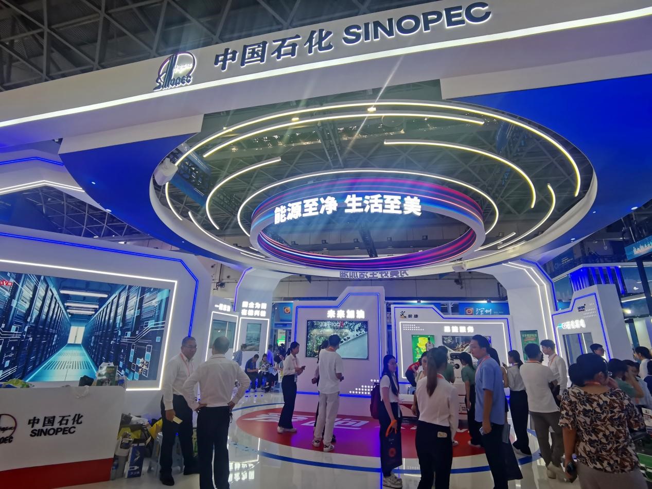 A photo taken on Sept. 16, 2023, showcases the Sinopec booth at the 20th China-ASEAN Expo in Nanning, south China’s Guangxi Zhuang Autonomous Region. (People’s Daily Online/Zhang Kaiwei)