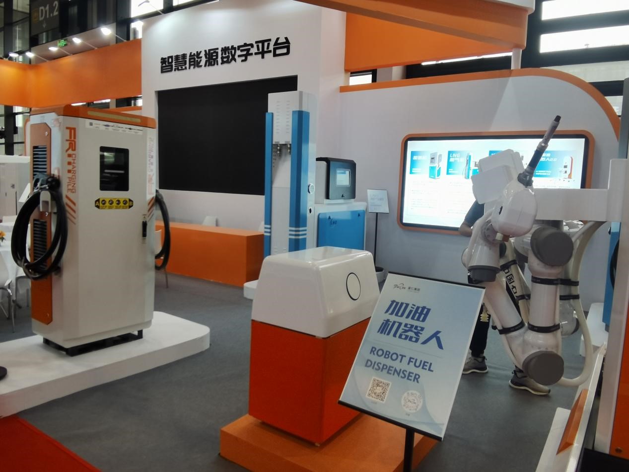 A picture from Sept. 16, 2023, features a refueling robot at the 20th China-ASEAN Expo in Nanning, south China’s Guangxi Zhuang Autonomous Region. (People’s Daily Online/Zhang Kaiwei)