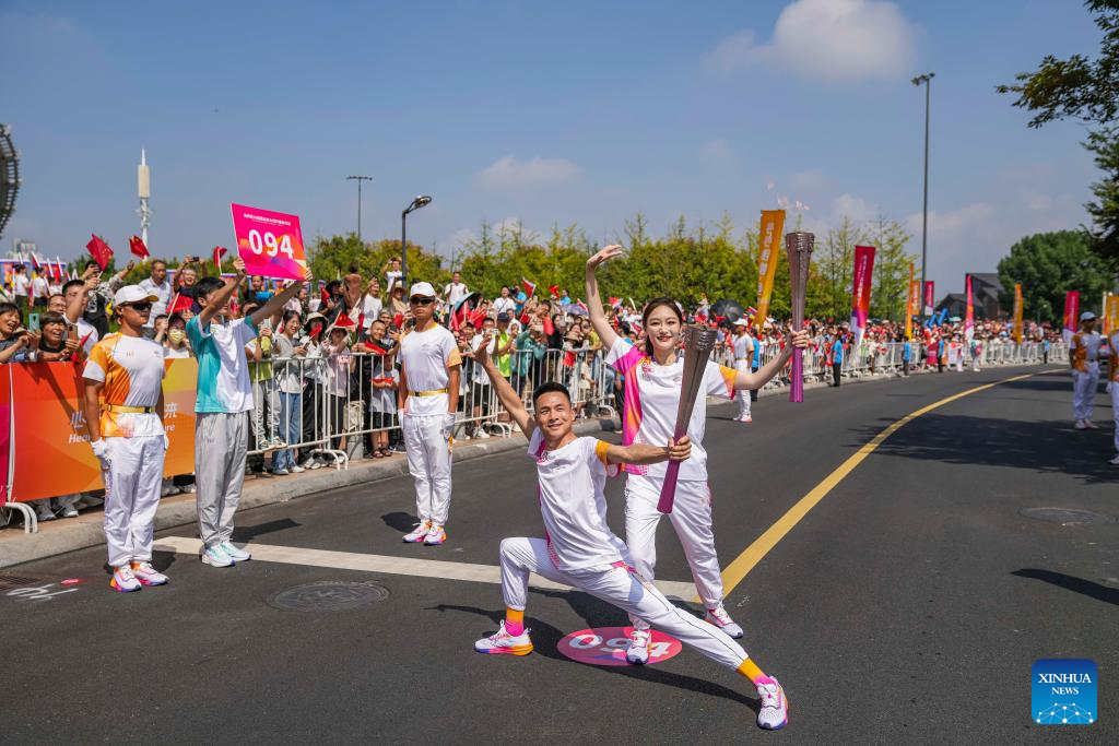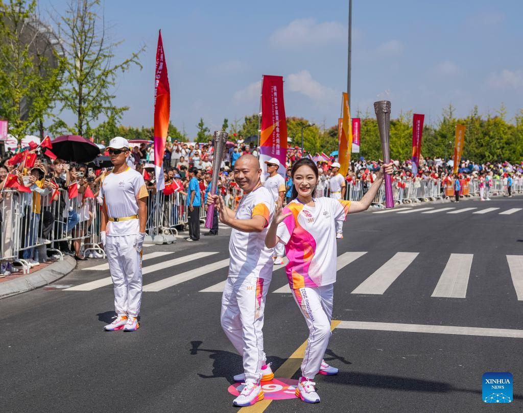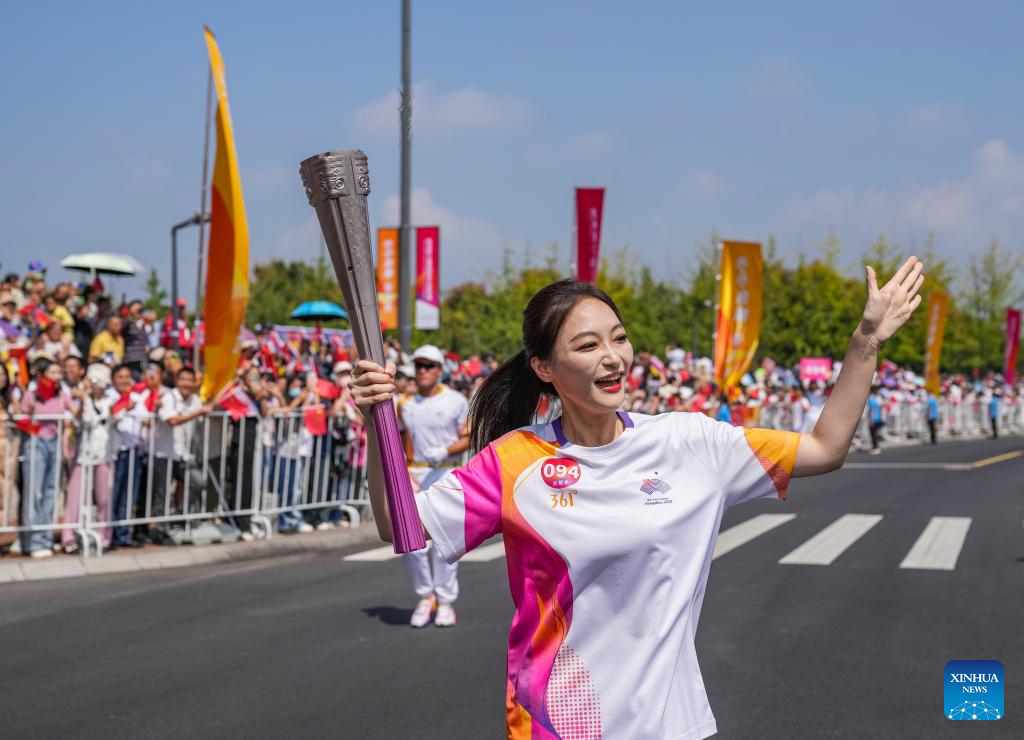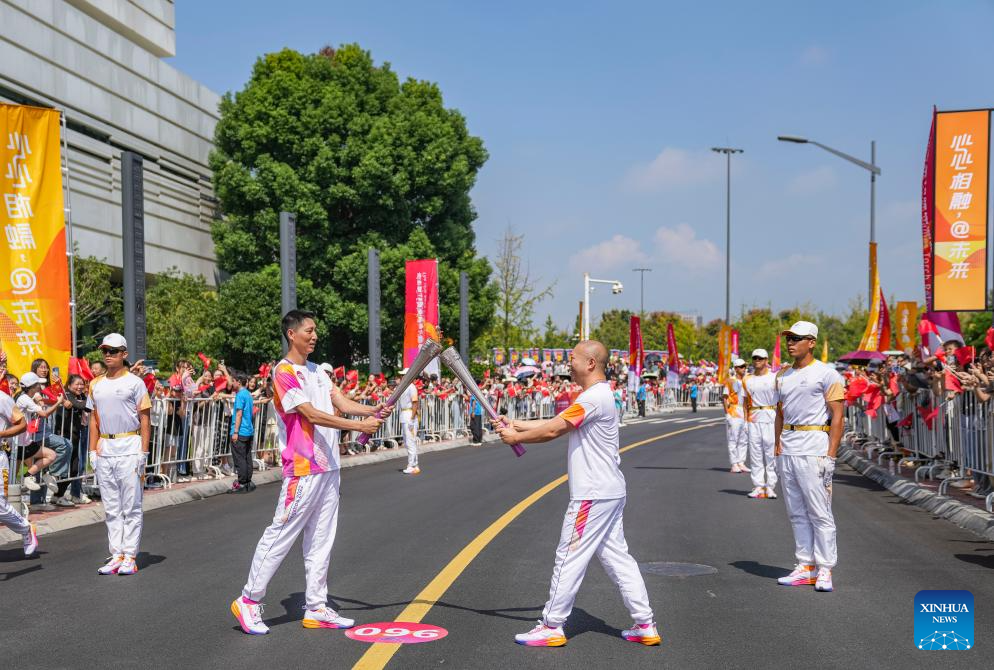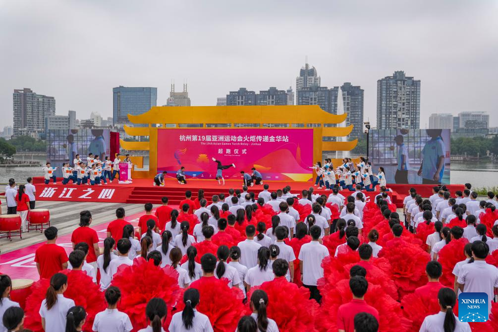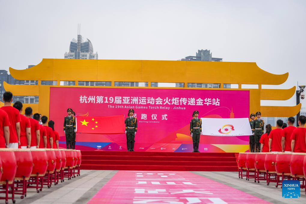 The starting ceremony of the torch relay of the 19th Asian Games in Jinhua is held in Jinhua, east China's Zhejiang Province, Sept. 17, 2023. (Xinhua/Sun Fei)