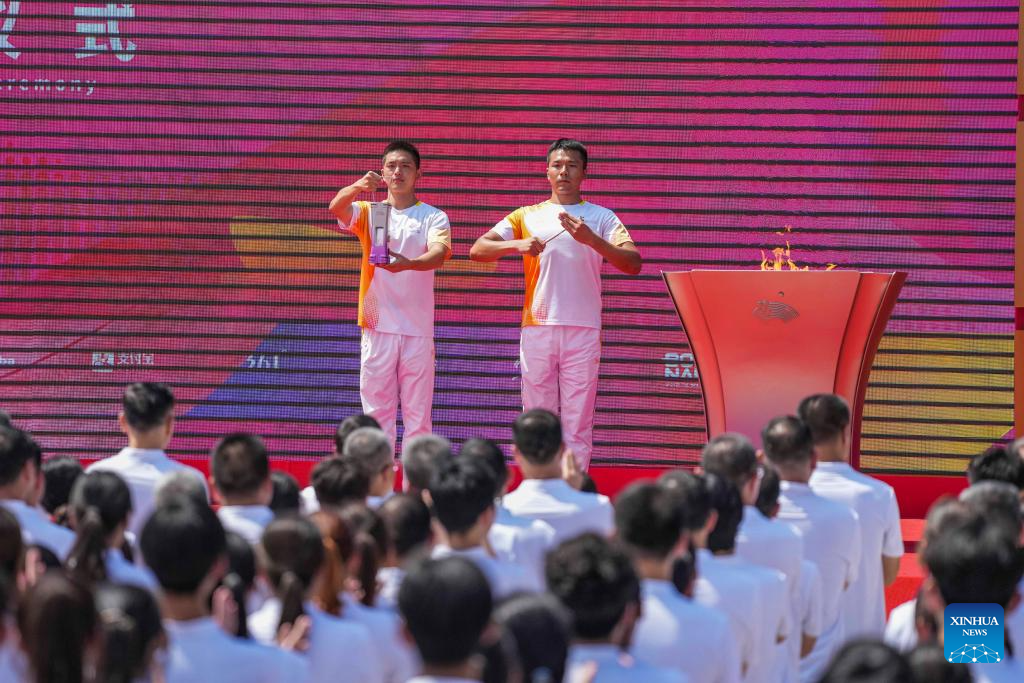 Photo shows the flame retrieval ceremony of the torch relay of the 19th Asian Games in Jinhua, east China's Zhejiang Province, Sept. 17, 2023. (Xinhua/Sun Fei)