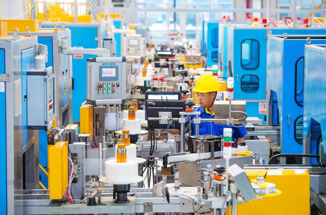 An employee works in a workshop of an intelligent cable industrial park in Changji Hui autonomous prefecture, northwest China's Xinjiang Uygur autonomous region. (People's Daily Online/He Long)