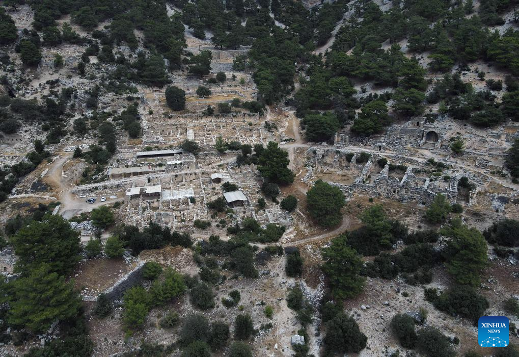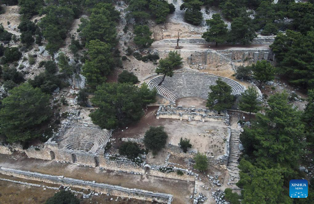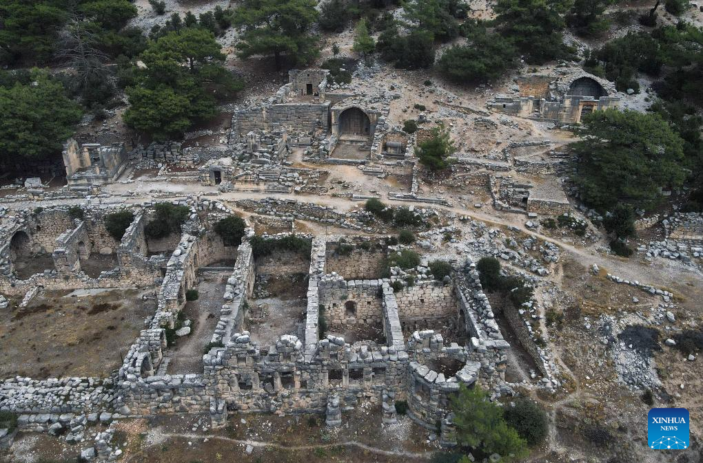 This aerial photo taken on Sept. 18, 2023 shows the ruins of the ancient city of Arykanda in Antalya, Trkiye. (Mustafa Kaya/Handout via Xinhua)