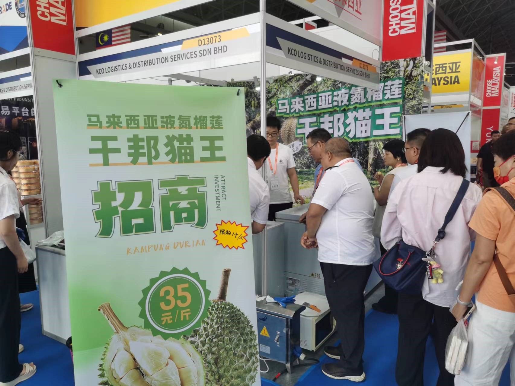 Eros Kong from Malaysia is the business development manager for Newleaf, a company specializing in the durian business. This year marks his first time taking part in the CAEXPO, and his company's booth has been perpetually encircled by customers. "We began our durian trade with China in 2019," said Kong. "To maintain the freshness of our durians, we freeze them to minus 110 degrees using liquid nitrogen. Subsequently, we utilize cold-chain transportation at minus 18 degrees until the durians reach cold storage in China." He noted that half of his company's durian exports are destined for China.