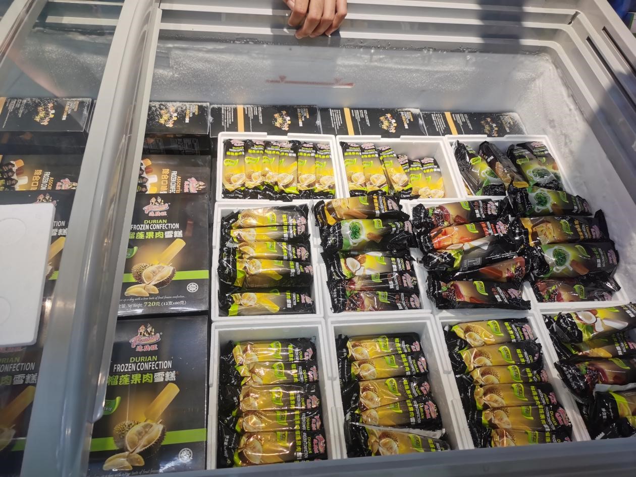 A photo taken on Sept. 16, 2023, shows durian popsicles in the Malaysia Pavilion at the 20th China-ASEAN Expo in Nanning, south China's Guangxi Zhuang Autonomous Region. (People's Daily Online/Zhang Kaiwei)