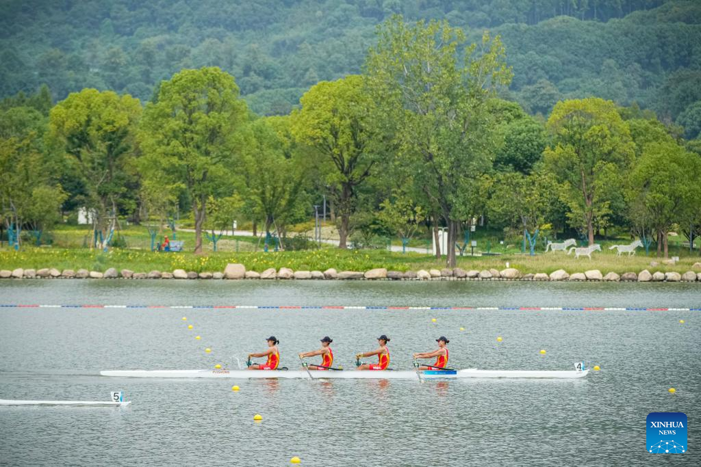 Team China compete during the Women's Four preliminary Race of rowing at the 19th Asian Games in Hangzhou, east China's Zhejiang Province, Sept. 20, 2023. (Xinhua/Jiang Han)