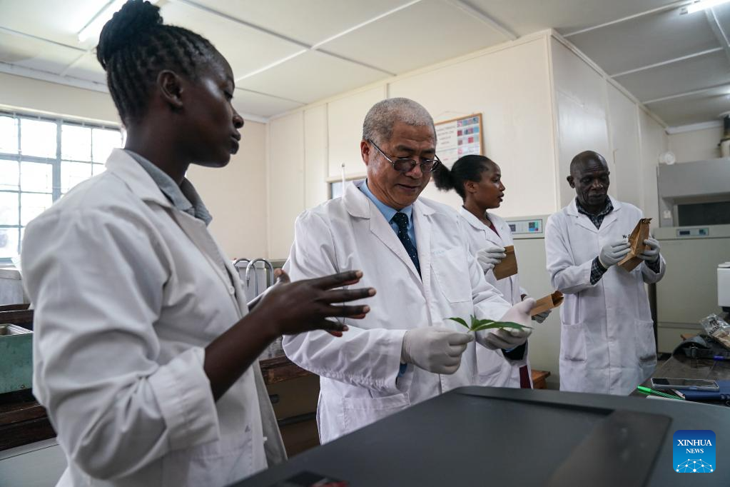 A Chinese professor instructs Kenyan graduate students at the China-Kenya Belt and Road Joint Laboratory on Crop Molecular Biology at Egerton University in Nakuru County, Kenya, on Sept. 18, 2023. (Xinhua/Han Xu)