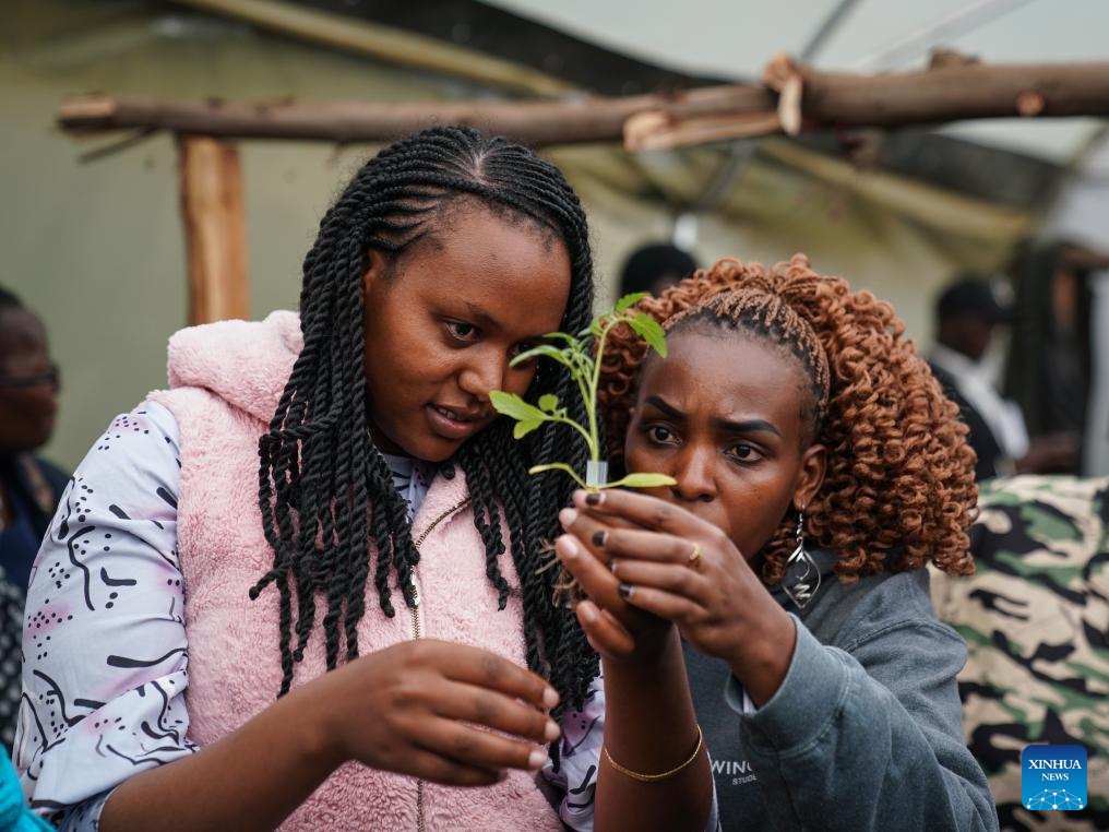 Kenyan trainees observe a seedling in Matangi Tisa Village of Nakuru County, Kenya, on Sept. 18, 2023. (Xinhua/Han Xu)