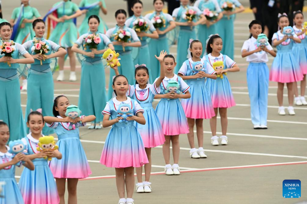 A welcoming ceremony is held upon the arrival of Crown Prince of Kuwait Sheikh Mishal Al-Ahmad Al-Jaber Al-Sabah in Hangzhou, capital city of east China's Zhejiang Province, Sept. 21, 2023. Kuwaiti crown prince on Thursday arrived here to attend the opening ceremony of the 19th Asian Games. (Xinhua/Xu Yu)