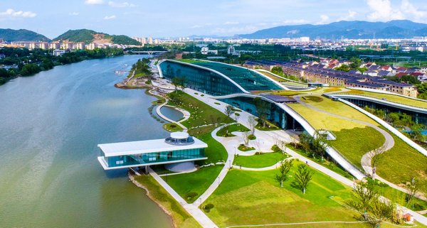 The roof of the Fuyang Water Sports Center, a venue for the Hangzhou Asian Games, has an area of 24,000 square meters that is decked with green plants. These plants contribute to a greening rate of 45 percent, resulting in less electricity being consumed for indoor temperature control.