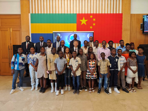 An awarding ceremony is held in the Chinese Embassy in Gabon to honor the winners of the "My Dream" painting competition for African youth. (Photo courtesy of the Chinese Embassy in Gabon)
