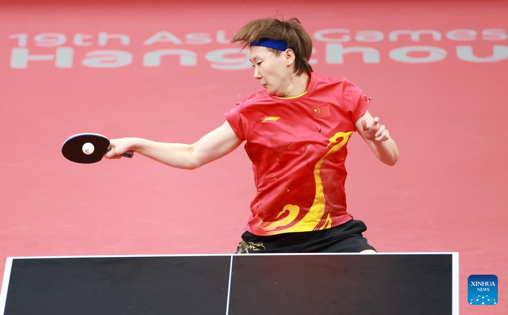 Sun Yingsha of China competes during the Women's Team Semifinal Table tennis match between China and Thailand at the 19th Asian Games in Hangzhou, east China's Zhejiang Province, Sept. 25, 2023. (Xinhua/Wang Peng)