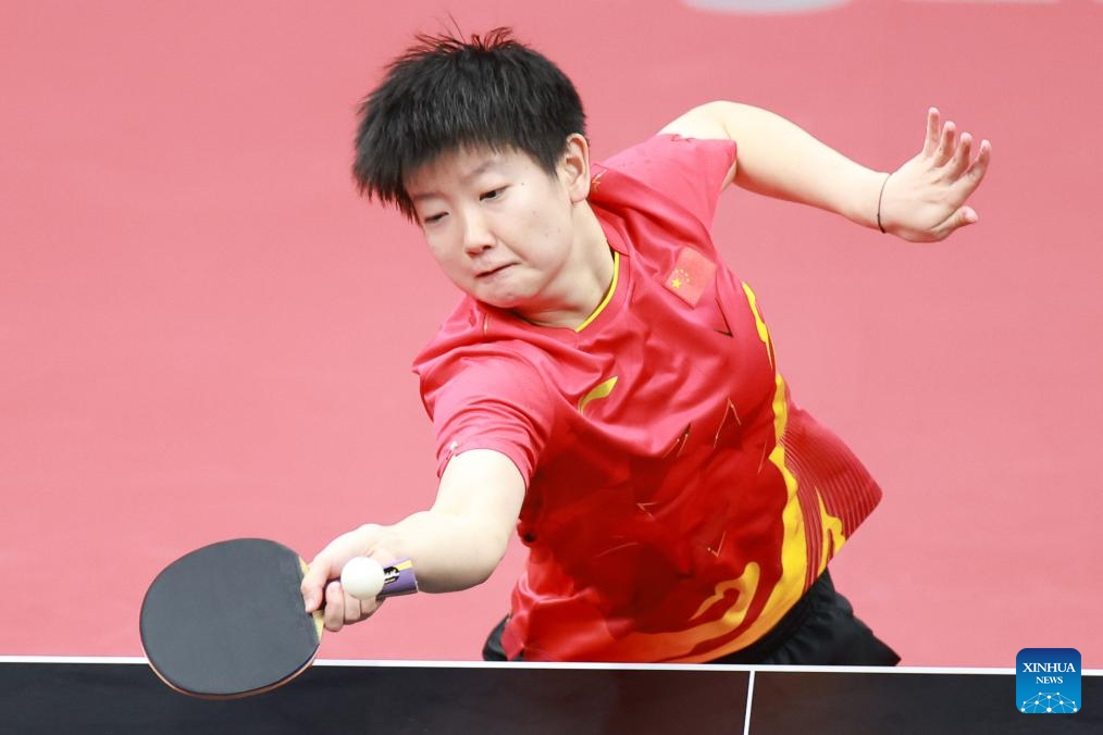 Sun Yingsha of China competes during the Women's Team Semifinal Table tennis match between China and Thailand at the 19th Asian Games in Hangzhou, east China's Zhejiang Province, Sept. 25, 2023. (Xinhua/Liu Xu)