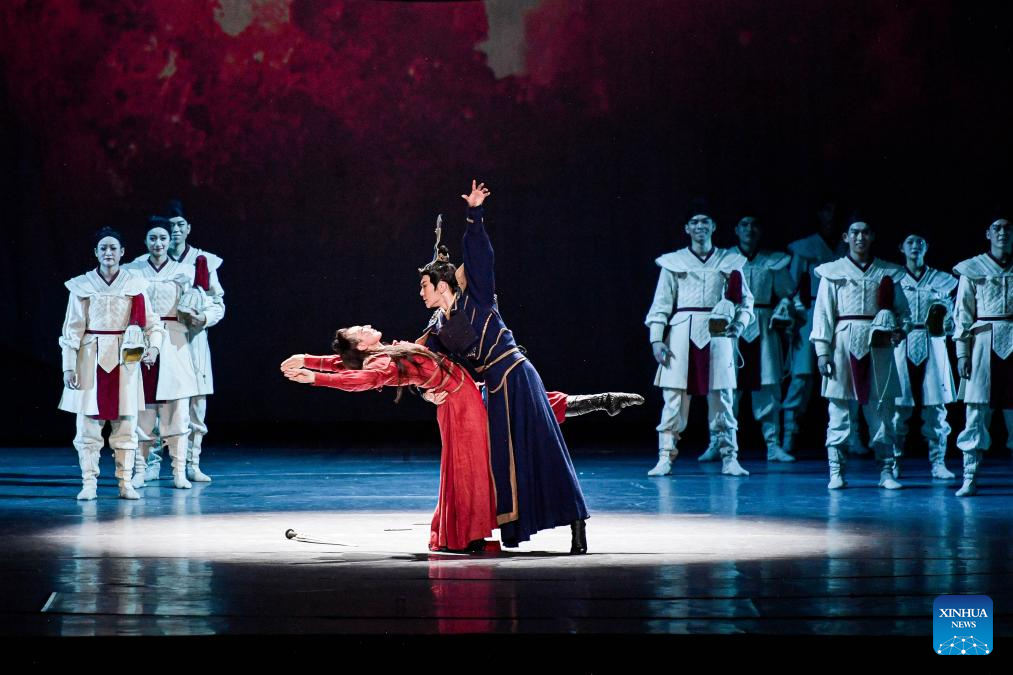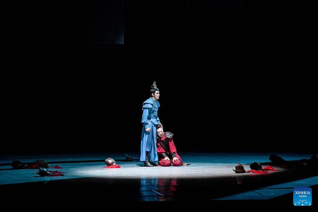 Artists from China perform Chinese dance drama "Mulan" in Boston, Massachusetts, the United States, on Sept. 23, 2023. The Chinese dance drama "Mulan" was staged in a theatre in Boston on Sept. 23, and will have shows on tour in Washington, D.C. thereafter. This was the debut of the drama in the United States, and over 1,600 audiences watched the performance. (Photo by Zhu Ziyu/Xinhua)
