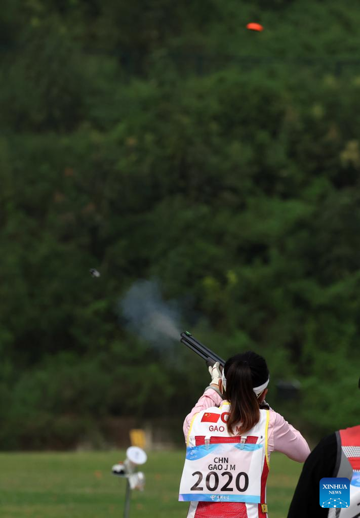 Gao Jinmei of China competes during the Phase 1 of Women's Team of Skeet-75 at the 19th Asian Games in Hangzhou, east China's Zhejiang Province, Sept. 26, 2023. (Xinhua/Du Xiaoyi)