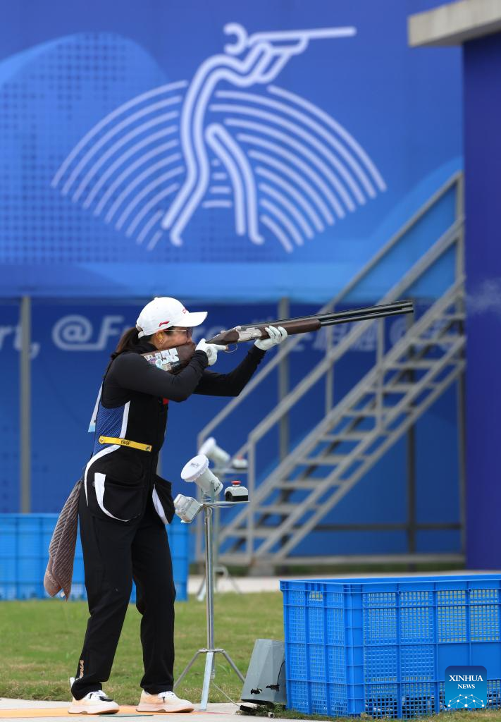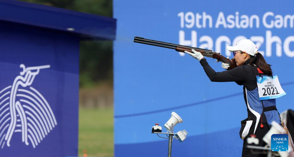 Huang Sixue of China competes during the Phase 1 of Women's Team of Skeet-75 at the 19th Asian Games in Hangzhou, east China's Zhejiang Province, Sept. 26, 2023. (Xinhua/Du Xiaoyi)