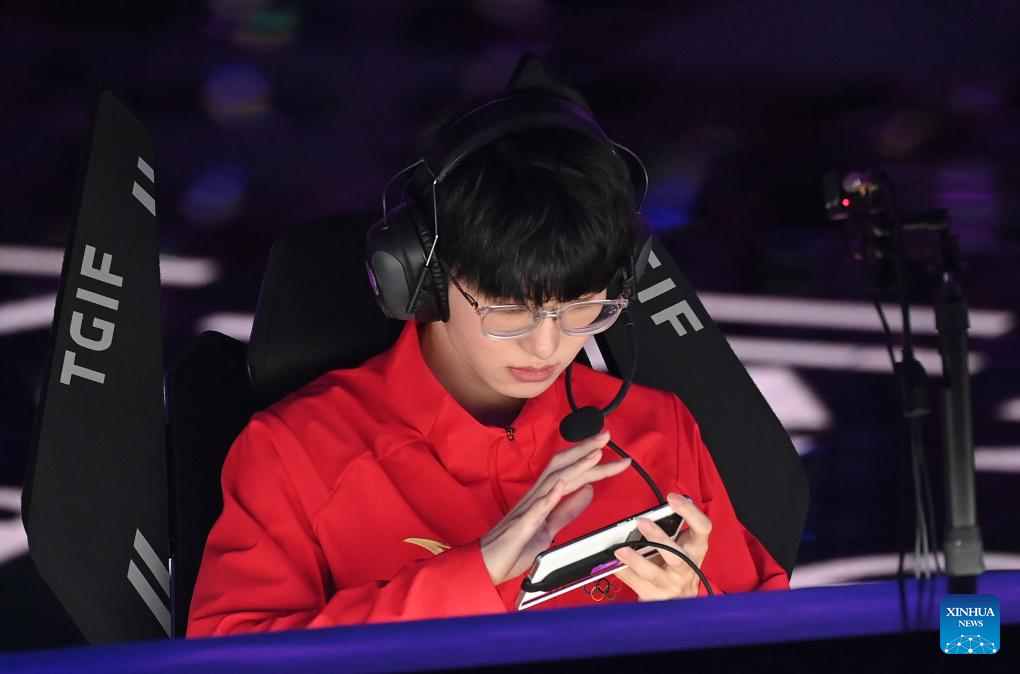 Xu Bicheng of team China competes during the Arena of Valor Asian Games Version Final match of Esports at the 19th Asian Games in Hangzhou, east China's Zhejiang Province, Sept. 26, 2023. (Xinhua/Yan Linyun)