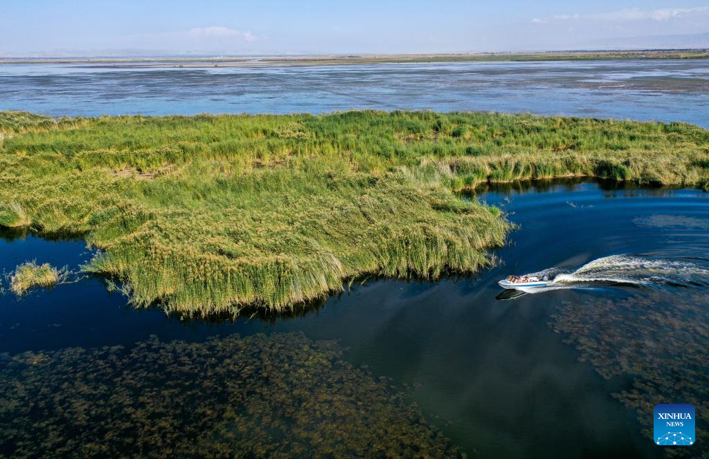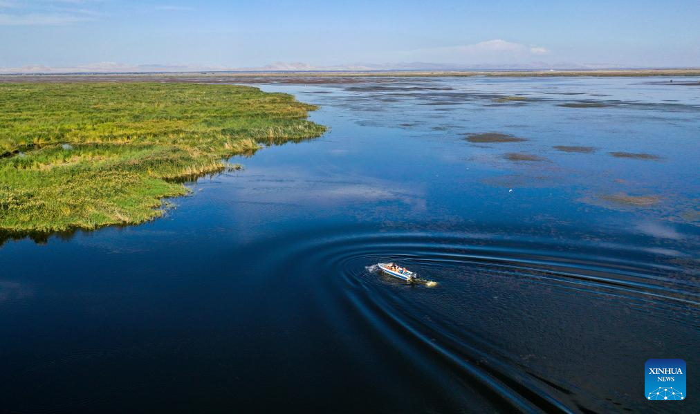This photo taken on Sept. 15, 2023 shows a scenery of the Ulan Suhai Lake in Bayannur, north China's Inner Mongolia Autonomous Region. (Xinhua/Wang Kaiyan)